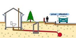 Wo die Grenze zwischen privater und öffentlicher Abwasseranlage liegt, ist in der örtlichen Entwässerungssatzung Ihrer Stadt oder Gemeinde festgelegt. Fragen Sie dazu den Sachbearbeiter Ihrer Stadt oder Gemeinde.
